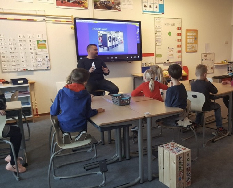 Ook Herman Harsevoort van Laundry Total mocht als ondernemer en eigenaar van Laundry Total vertellen aan 4 klassen wat zijn beroep inhoudt.
