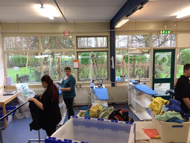 Zorginstellingen die van de wasserij hun passie maken, en dat spat er vanaf. Op de foto ziet u o.a. Sando van Stichting Philadelphia Zorg, Werkstation Beinum, uit Doesburg