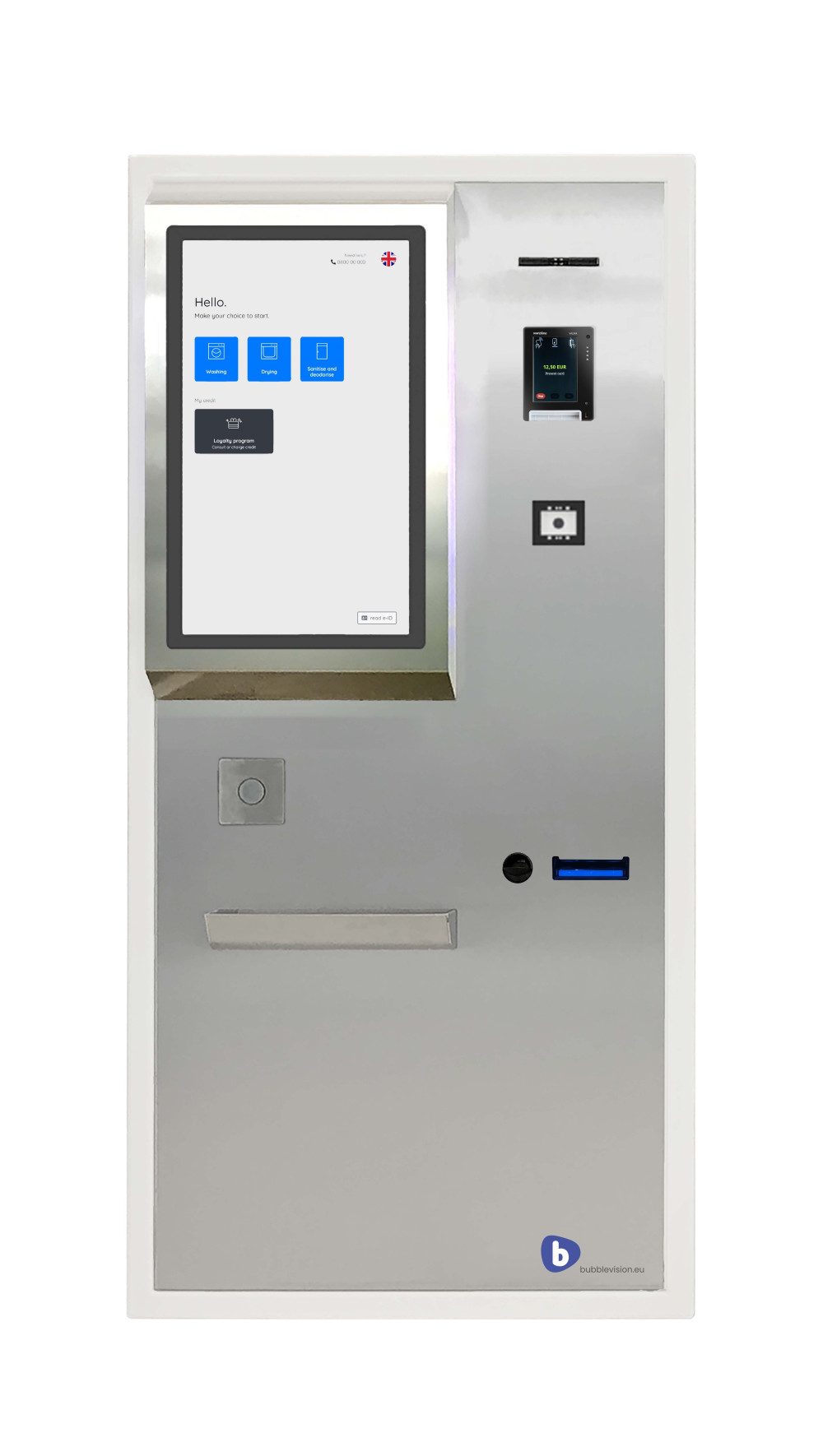 Het betekent ook de mogelijkheid om 24/7 op afstand machines te starten, het scherm van uw klanten mee te volgen of over te nemen en de transacties in real-time te bekijken en te controleren. Bubblevision biedt u de mogelijkheid om uw eigen loyaliteitsprogramma te creëren en uw klantentrouw te vergroten. Dit alles in een elegant ontworpen robuuste stalen brandkast, speciaal voor wassalons.